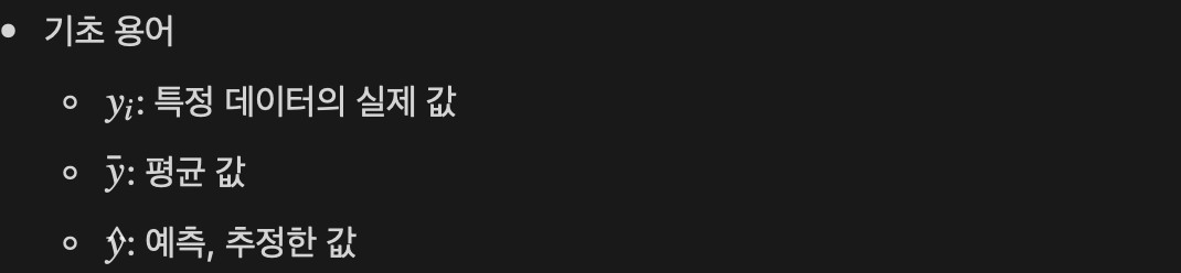 - 0과 1 사이의 값으로 1에 가까울수록 회귀 모델이 정확하다는 뜻