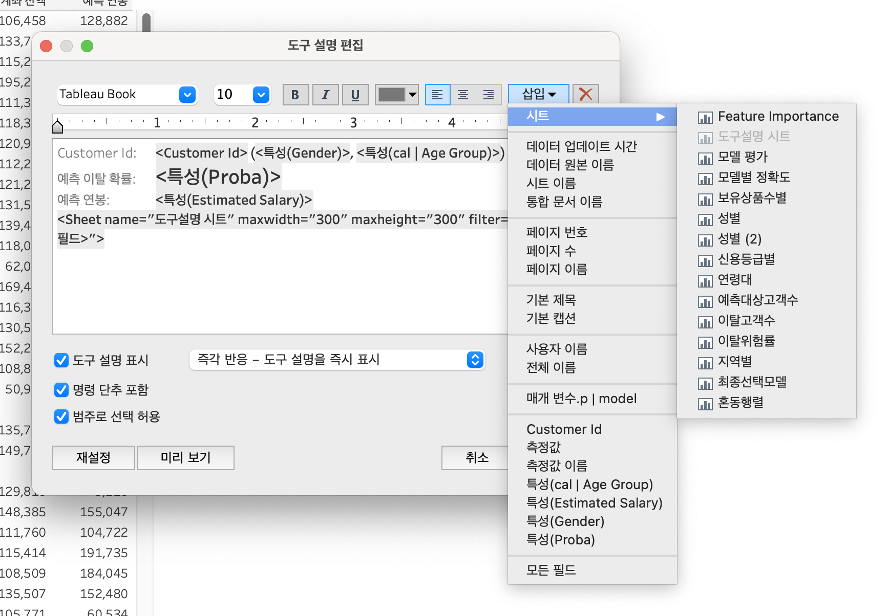 [삽입] - [시트] - [도구설명 시트]를 선택해서 추가한다.
