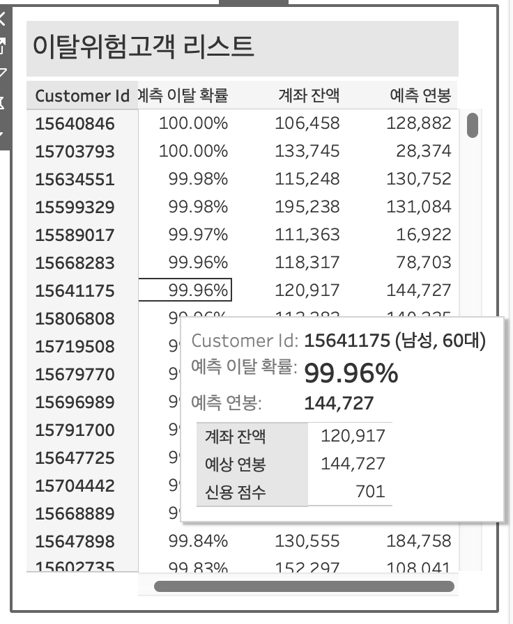 이렇게 마우스 오버를 했을 때 고객의 정보가 표로 정돈되어 나오는 걸 표현하고 싶다면